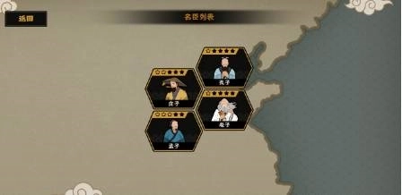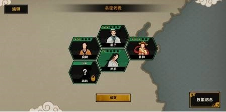 循环增加民心的名臣有嫘祖、孔子、老子、庄子;军心的有钟无艳、孙膑、寒浞;威望的有廉颇、妲己、周公旦、郦食其。
