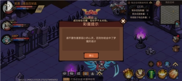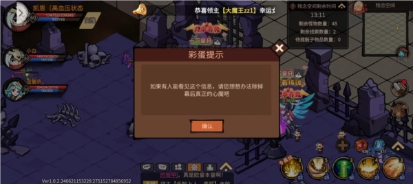 击败魔王后会触发彩蛋提示,其掉落物与天使相同,不过后续或许会提升爆率,或是增加特殊掉落。