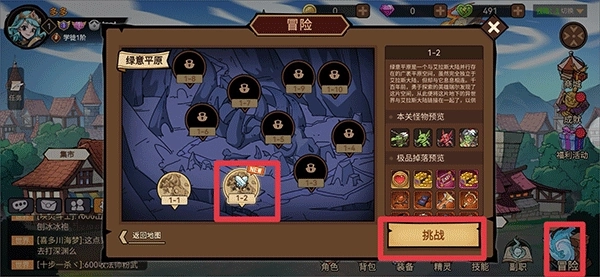1、启动游戏,在游戏主界面点击“冒险”选项,接着选定章节后点击“挑战”按钮