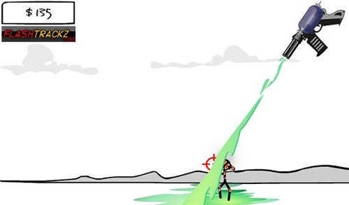 4、火焰喷射器:这款暴力机械,看着火柴人被火焰吞噬的模样会让人感到很刺激。
