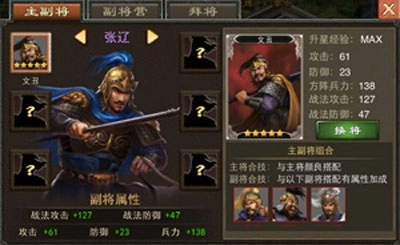 我亲自测试后编了个口诀:紫将优先选,组合效果好。对比下面两张图,第一张副将凑齐了赵云“枪神传人”的三个合技;第二张副将的“五虎上将”合技只凑了两个。一看属性才发现,“五虎上将”的属性竟然这么猛!
