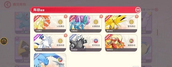 5、精灵背包里设有阵容推荐板块,大家可以从中挑选适合自己的阵容来作为参考。