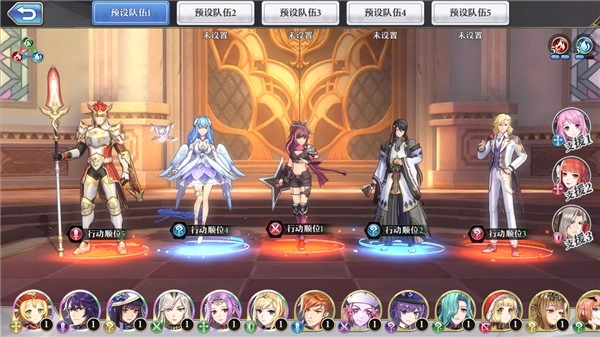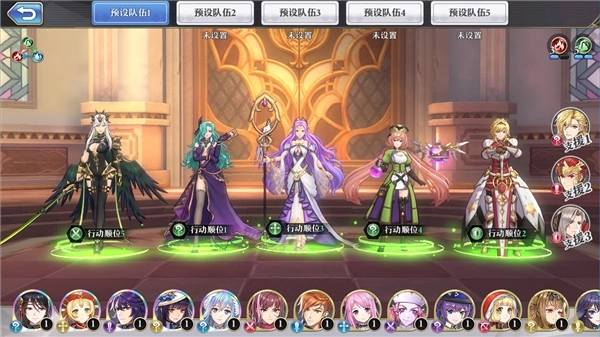 每次参与战斗时,设有5个上阵位置和3个支援位置。阵容的整体搭配逻辑为“5+3”模式,意味着需要将所有位置全部填满。