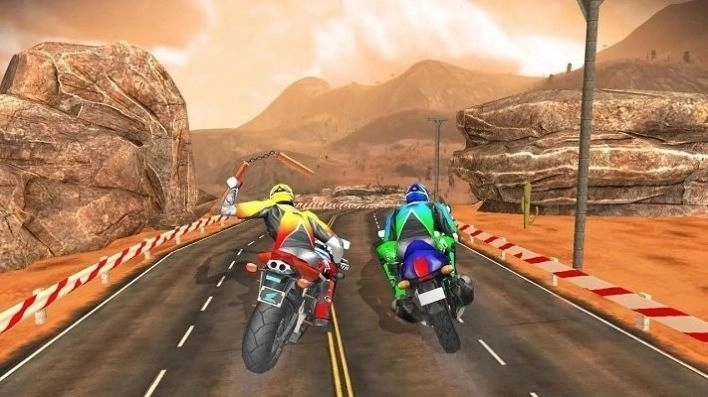 1.这款游戏以赛车作为基础设定,把搏击当作核心玩法,旨在打造一场充满搏击暴力元素的摩托车赛事!