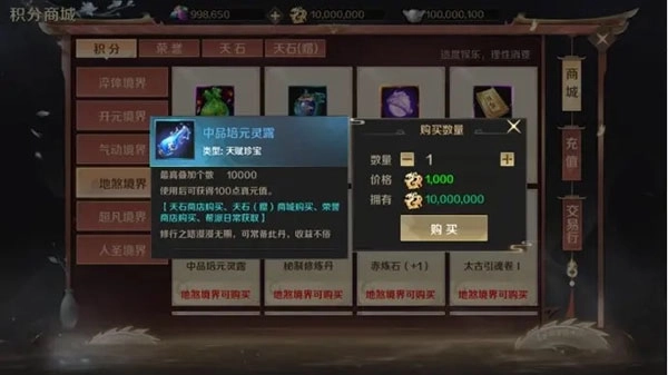 消耗真元值能够提升天赋等级,从而获取更强大的属性。真元值可借助使用“培元灵露”来得到。“培元灵露”则可以通过完成日常任务或者在商城购买的方式获取。