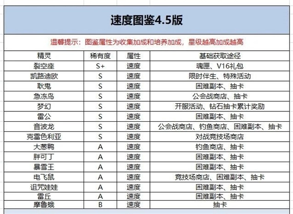 图鉴已经强调过很多次了。图里这些精灵的图鉴效果全都是加速度的。不只是收集它们就行,还得给它们升星,速度属性才会越来越高。