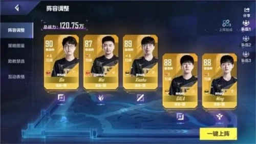 我玩的是RNG的主C选手GALA。WEI和GALA、MING这几位选手,大家可以通过签约心愿单的方式来获取,相对会容易一些。TES的全体队员都能加入心愿单,不过就我个人看法,TES的主C优先级应该是JACKERLOVE>KNIGHT>其他队员。接下来的内容,我会主要围绕RNG的阵容来做推荐。