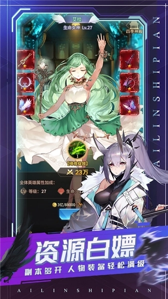 女神可以为全体英雄带来生命与攻击的属性增益,通过消耗纯净星符升级女神能够增强其属性;战斗时,当女神怒气值达到100点,会自动释放女神技,对敌方英雄造成伤害。开服第七天将解锁女神饰品佩戴功能,这能进一步提升女神属性,而激活饰品套装效果还可额外提高属性加成哦。