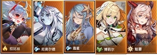 1、拉比丝(核心输出)+霜星+博利尔+雾恋+尤娜