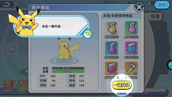 2、捕捉皮卡丘时,得先把它的血量压低一些,这样用精灵球捕捉起来会更容易成功。
