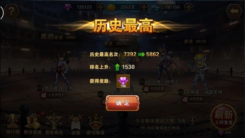 每个玩家在竞技场中只要突破自己的历史最高排名,就能拿到丰厚的钻石突破奖励;不仅如此,每日竞技场结算时,系统还会依据玩家当前的排名,发放相应的钻石奖励。在这个竞技场里,唯有强者才有资格赢得属于自己的荣耀,而钻石,正是对强者实力的最佳奖赏。
