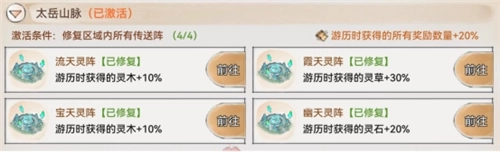 激活地图上的小传送阵,能提高弟子在该地图游历获得的全部奖励(含声望值),因此地图全部解锁后,务必第一时间把所有小传送阵都激活。(不着急升级的玩家可以忽略这段,省些灵玉也没关系)