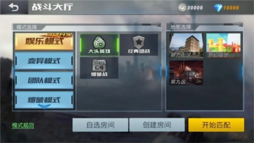 进入【战斗大厅】就能挑选模式、创建房间,开启和其他玩家的热血枪战。