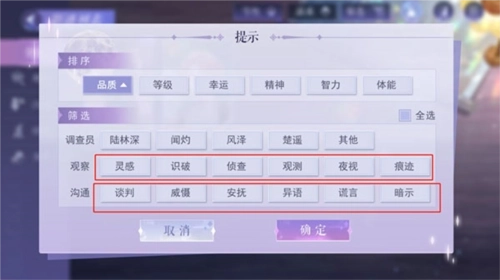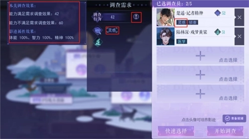 2、挑选能力标签匹配的影迹。在现代篇第一章2号线车厢这一关卡里,当调查效果值达标的时候,选用带有【灵感】能力标签的影迹就能开启调查。另外要说明的是,并非能力标签“不满足”就绝对不能顺利完成调查。要是影迹数量不多,你可以选择该类型中调查效果值“更高”的影迹来通过关卡。同时,你也可以留意右上方的调查气泡,毕竟这是判断当前阵容能否通关最直接的提示。