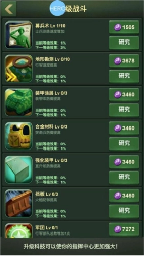 在研究室的初级战斗中我们可以找到募兵术,它可以有效的提高产兵速度,减少对部队训练加速卡的消耗