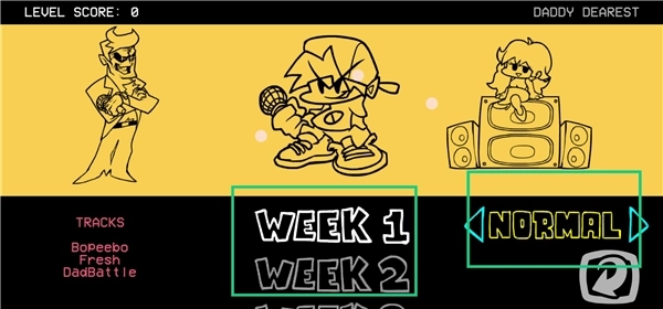 游戏划分为多个Week(周),每个Week都会有不同的对手角色以及歌曲(一般是3首)。