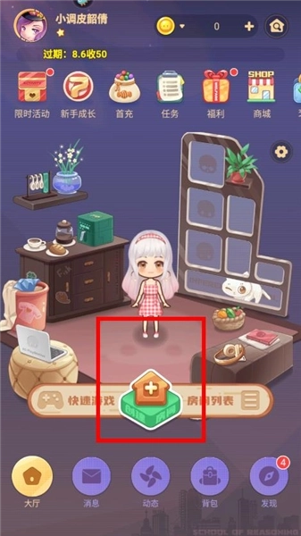 1、打开推理学院游戏,在主界面点击下方中间位置的创建房间标识。