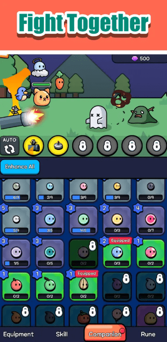 - 从无尽的装备扭蛋中获得的装备进行强化和装备。