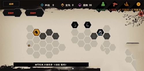 在这场战斗中,由于开局时双方兵力均等,玩家可以凭借更高的策略智慧战胜AI,率先攻占部分城池。之后,可优先研发提升粮食与金钱收益的民生科技,以及降低出征损耗的军事科技。