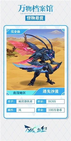♦特点:通体主色调为银白,尾端毛发泛着淡淡的蓝色——这是其运用风元素力量所致;它热衷于用利齿制作项链,四肢迅捷且充满力量;察觉敌人时会即刻冲上前撕裂对手,偶尔也会藏身风沙之中,逐步消磨敌人的意志力,待对方松懈瞬间发动致命一击。