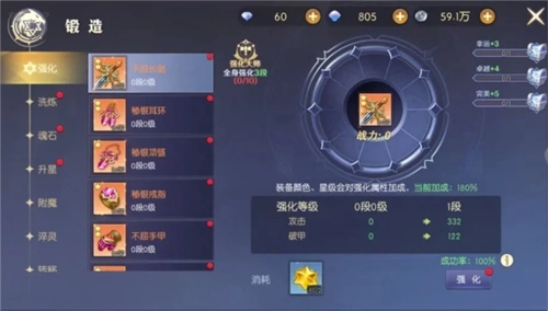 接下来是装备,除了通过打boss和活动获得高品装备后,还能够在锻造中进行各种强化。首先是提升强化等级。需要消耗星辰碎片,在光明寻礼、凛冬堡垒、限购商城等途径就能获得,强化等级提高后基础属性会大幅增加。在进行强化的时候尽量选择雨露均沾的模式,这样可以触发强化大师的属性加成。
