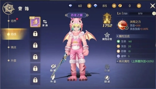 最后是外观、背饰等其他方面,这些方面因为比较氪金,所以平民玩家可以不过多追求,但是在土豪玩家眼中却是提升战力很重要的方式。背饰可以通过不断地激活来获得属性加成。外观分为坐骑,时装,头饰,只要获得对应时装就能解锁相应属性,即使不穿戴也同样能享受到加成。