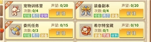 4、36级左右时第一天的主线会暂时完成,别急着下线,这个时候记得把宠物训练营、装备副本、委托任务的剩余次数全部打完,获取更多的资源与经验