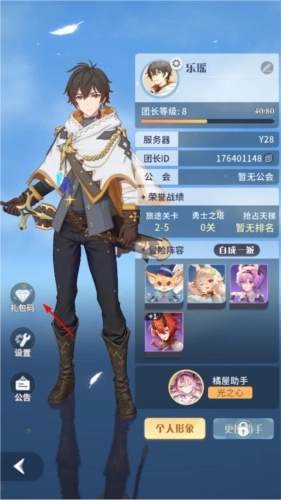 2、接着点击礼包码选项,在对应的兑换输入框中填入礼包码就能完成兑换(需要注意的是,礼包码功能要等角色等级达到20级后才会解锁使用)