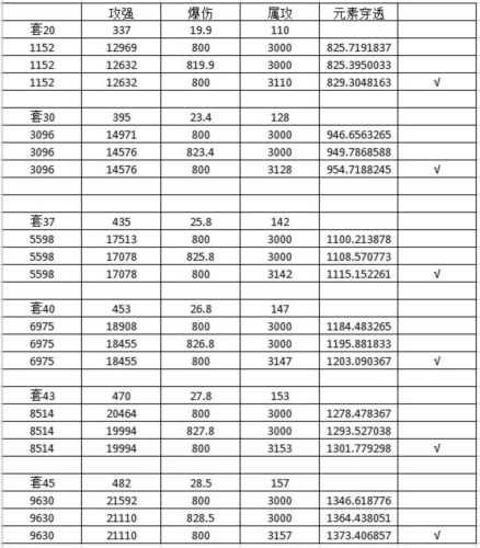 在1级到45级的阶段里,属攻始终是最优的选择;至于攻强和爆伤,35级之前攻强的表现会略胜一筹,但35级之后爆伤的优势就会显现出来,等到了45级,因为固定攻强数值变高,攻强的收益反而变得极低。