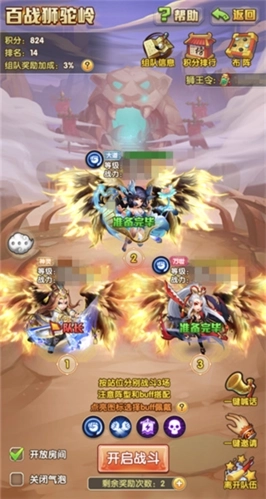 当主角等级达到76级时,开启玩法【百战狮驼岭】。