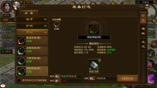 防具和首饰有不同属性可选择,打造装备可以根据职业及自身发展方向选择属性打造适合自身的装备。前期升级很快,建议50级后开始打造装备,前期打造装备就是浪费材料。