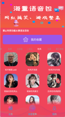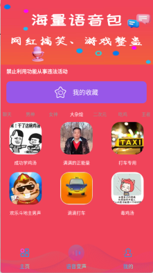 2、进入主页后,能看到多种类型的语音包,可把喜欢的语音添加到收藏里。