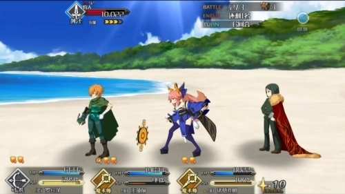 在《FGO》中,战斗通过对从者下达的命令用指令卡来表现,通过回合制的形式展开指令战斗。战斗分为战术阶段与指令阶段,根据您的选择,从者会分别发动攻击。己方攻击后,转为敌方行动。敌方行动后一回合结束。