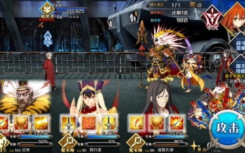 在攻击时,会在银幕上方显示目前可以使用宝具的英灵,点击之后即可发动宝具。