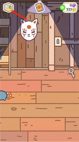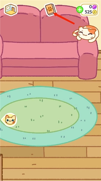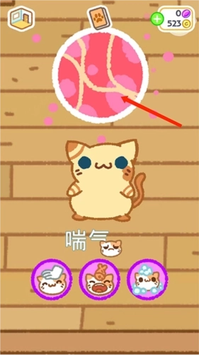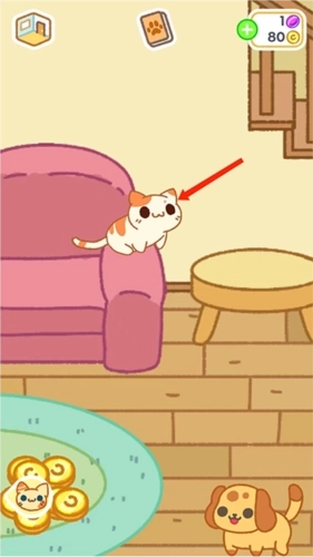 6、接下来,点击上方的【圆球】图标,小猫就会出去“偷”东西了;