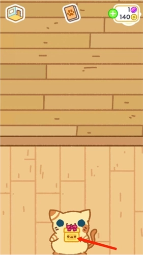 1、启动游戏,进入游戏主界面后,能看到小猫的表情显得不太开心,此时点击这只小猫;
