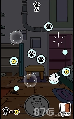 2.戳泡泡游戏里,10个猫爪图案能兑换成一个金币,另外有时也会直接出现金币图案。