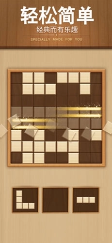 2、直观又富有挑战性的游戏玩法:玩家仅需通过简单拖动木块至指定位置即可操作,但想获取高分就得运用策略,整个游戏过程轻松与刺激并存。