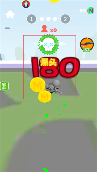 3、若能成功命中敌人头部,便会触发爆头效果,从而获取高额分数与金币奖励,建议尽量通过爆头操作来积累更多金币。