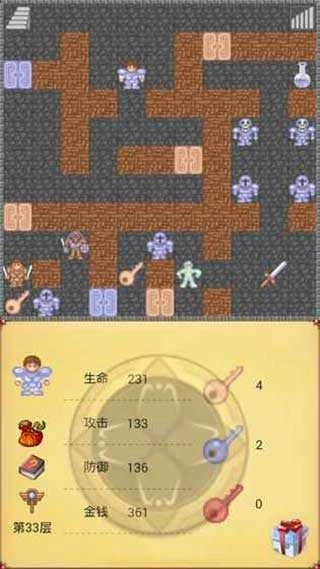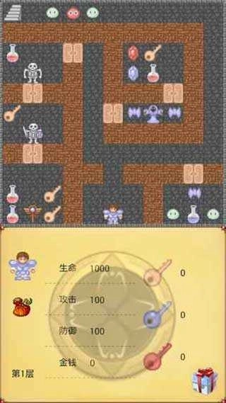 此外,游戏界面会清晰呈现当前血量、攻击力、防御力、所在层数及金币数量等关键信息,同时支持随时存档功能,让玩家能够从之前的高层数继续冒险,有效提升了游戏体验的流畅度。