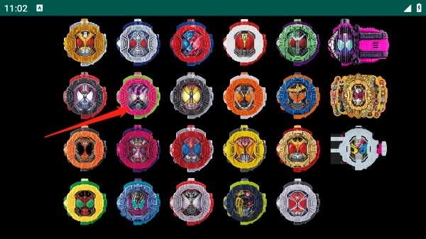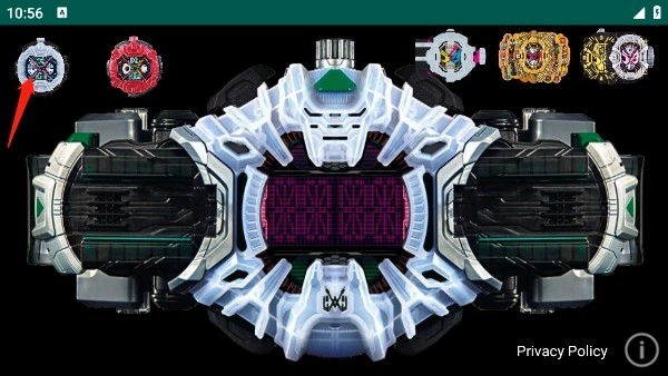 1、一进入这个游戏模拟器,就能看到正中间那个白色的时空驱动器,还有它上方左右两侧的驾驭表头。时空驱动器的左右两边都能插入表头,所以我们先点击左上方的白色Zi-O驾驭表头。