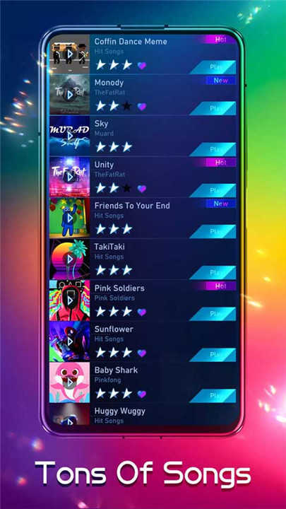 4、奖励机制:玩家在游戏中通过成功击中钢琴块完成相应挑战后,能够获取金币与钻石这两种奖励,这些奖励可用于解锁更多的关卡以及音乐内容。
