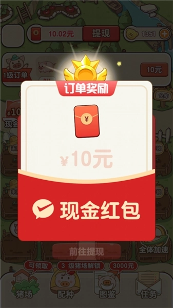 完成订单后,玩家可以将小猪交付给客户,获得红包奖励。