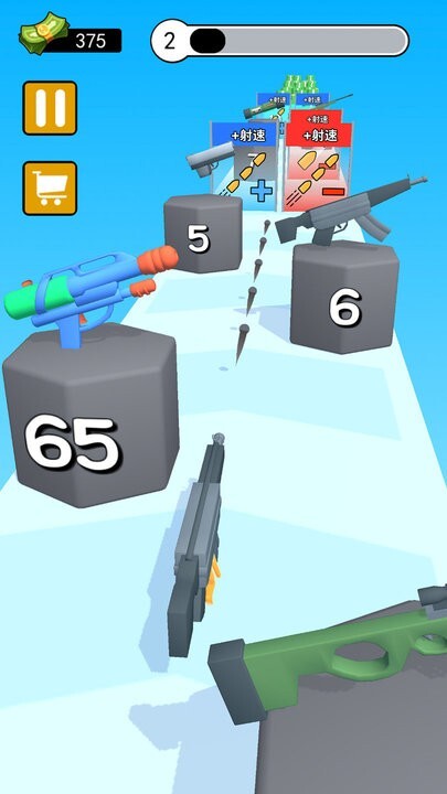 游戏里设有多样的挑战关卡供玩家体验,消灭敌人获取的金币可用于不断升级你手中的枪械武器。