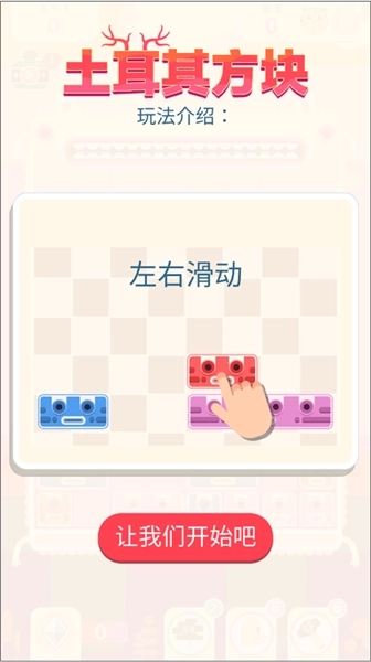 土耳其方块是一款休闲益智类的消除游戏,玩法目标十分简单:通过水平移动方块,将整行填满即可完成消除。这款游戏完全免费,而且操作起来很容易上手。从开始玩Slidey的那一刻起,你就会被它深深吸引,体验到前所未有的游戏乐趣。作为一种全新类型的消除游戏,它能让你长时间沉浸其中——无穷无尽的挑战等待着你,你可以一直玩下去,总能在游戏里发现新的惊喜;随着游玩积累经验,还有精心设计的关卡等你来挑战!喜欢消除游戏的朋友们,可千万别错过这款游戏,一定要试试看哦!