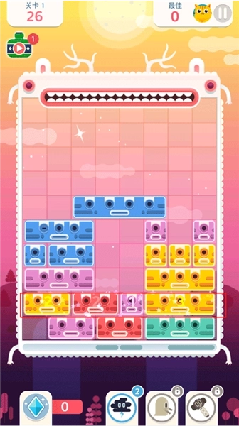 1、这款游戏的玩法十分简单,只需把上方的方块左右移动,让方块落到下方空缺之处,等填满整行后消除即可。