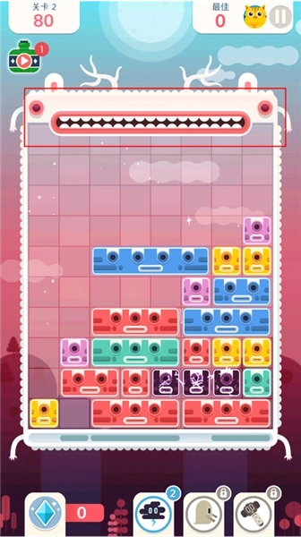 3、但要注意,如果方块持续向最上方的那个大嘴靠近,这一关卡就会自动结束,并开始结算你的分数。