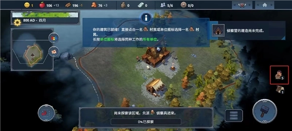 7、当建筑建好以后,直接点击游戏中的村民或者点击右下角的村民图标,长按单位图标将选择同种工作的所有单位;