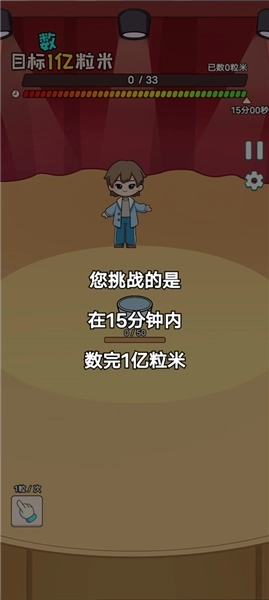 2、这款游戏的风格相当魔性且沙雕,玩家需要在游戏里完成数完一亿粒米粒的任务。
