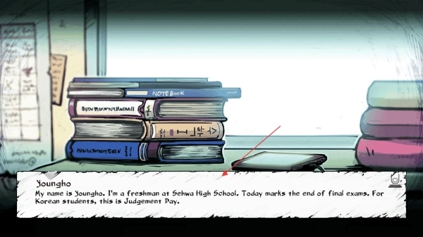 3、仔细阅读开场剧情的文字内容,确认角色【Youngho】是世华高中新生这一背景设定。